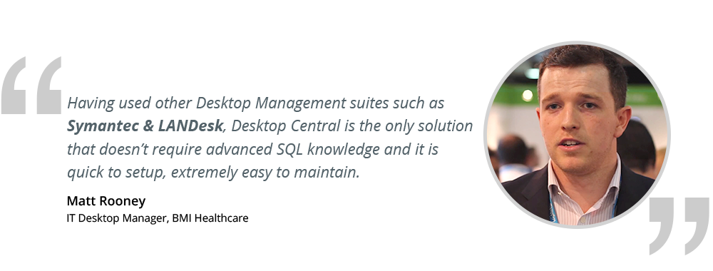 Endpoint Central est un logiciel en ligne permettant de gérer vos serveurs Windows et vos environnements bureaux. Il est capable de gérer des milliers serveurs/bureaux à partir d’un seul et même endroit. Il automatise la gestion complète de votre bureau que ce soit une simple configuration ou un déploiement massif d’applications.