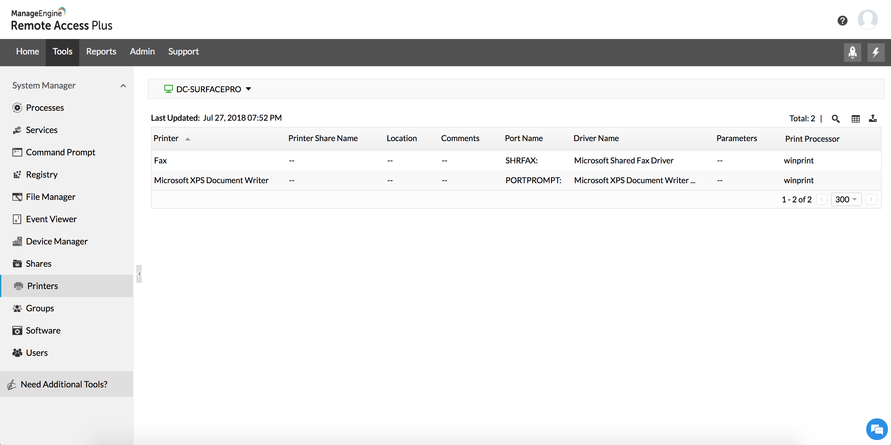 Remote Device Manager permet aux techniciens d'accéder au gestionnaire de périphériques des machines Windows à partir d'un emplacement central. Cela permet de résoudre à distance et plus rapidement des problèmes tels que la mise à jour du pilote, la gestion des imprimantes, etc. Remote Access Plus Device Manager est conçu pour gérer à distance les périphériques matériels installés sur n'importe quel ordinateur de votre réseau.