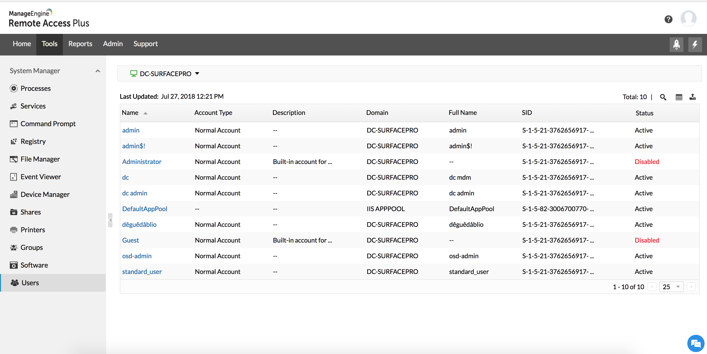 - Capturez la liste de tous les utilisateurs associés à n'importe quel ordinateur de votre réseau, y compris les informations sur le nom d'utilisateur, le type de compte, les informations sur le domaine et plus encore.