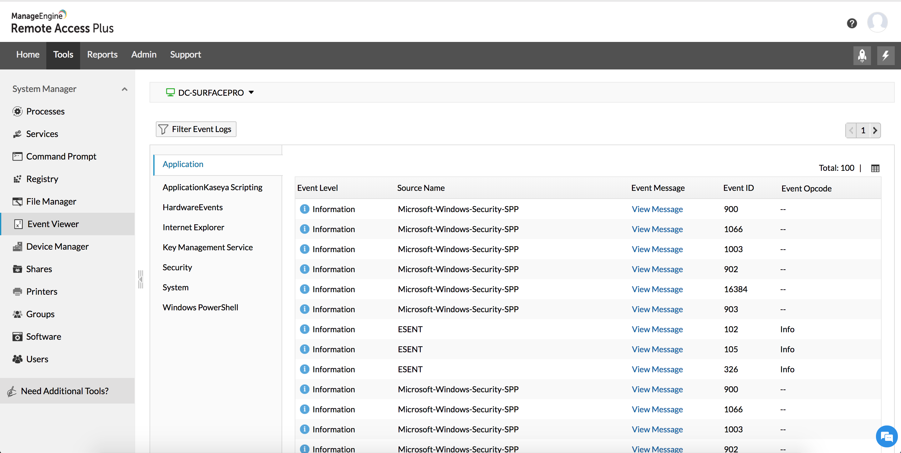 Windows Event Viewer est un journal détaillé qui enregistre presque tous les événements dans le système d'exploitation et les applications installées. Avec Remote Access Plus - Remote Event Viewer, vous pouvez facilement suivre les opérations de configuration du système, les actions matérielles et logicielles, analyser les fichiers journaux pour détecter la différence entre la sécurité et les problèmes opérationnels.
