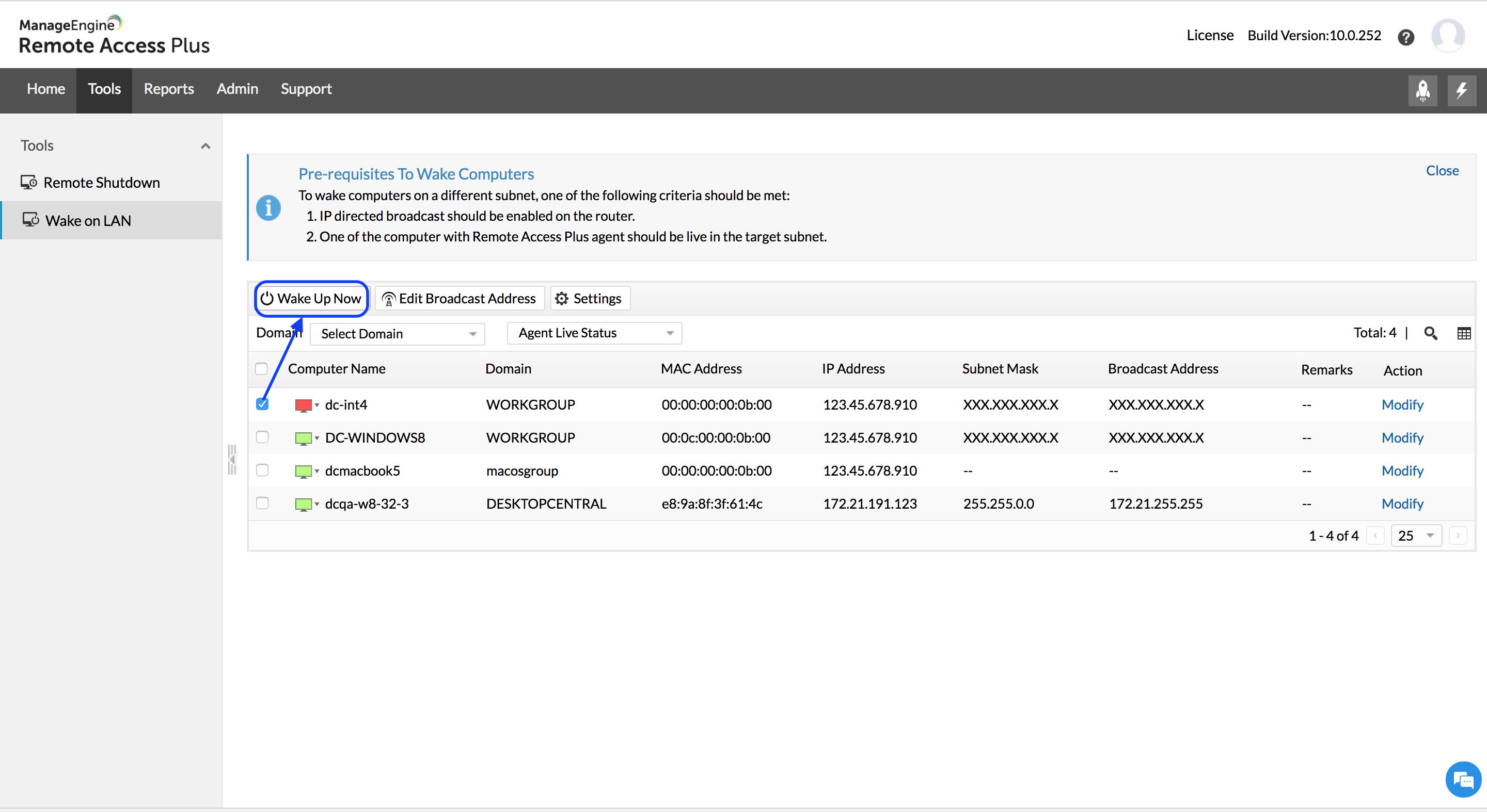 - Aucun agent requis ! Réveillez n'importe quel nombre d'ordinateurs prouvant l'ID MAC, le sous-réseau et l'adresse IP.